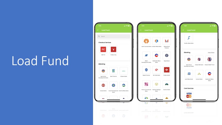 ५. वालेट लोड : विभिन्न भुक्तानी विधिहरू प्रयोग गरेर तपाईको वालेट लोडगर्न सक्नुहुनेछ । तपाईको सबै कारोबारहरूको लागि डिजिटल वालेटको सुविधा लिन सक्नुहुनेछ ।